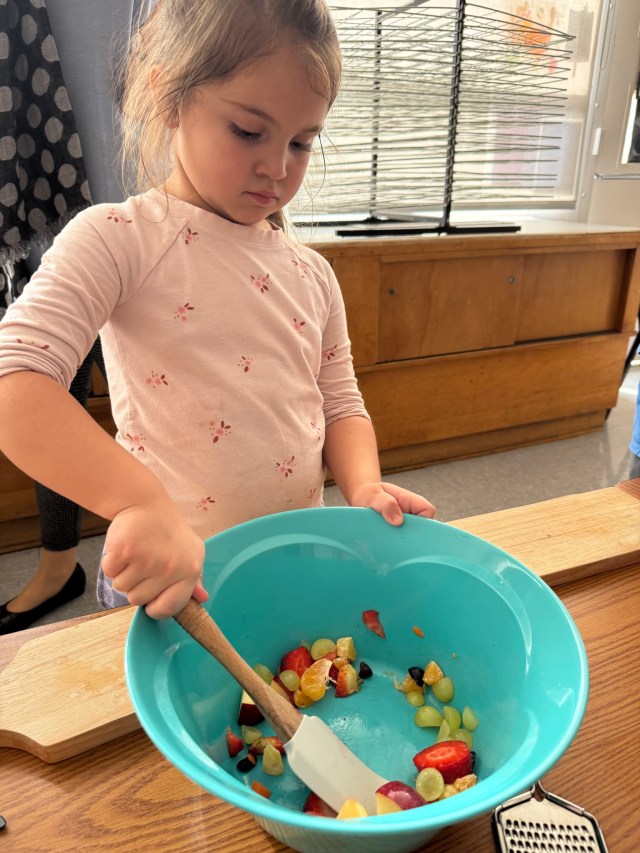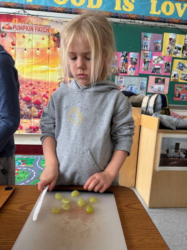 Mūsų mažieji kulinarai jau ruošiasi Padėkos dienai ir gamina salotas. Nuoširdi padėka mokytojoms Dianai ir Almai už tokią įdomią ir skanią pamoką!