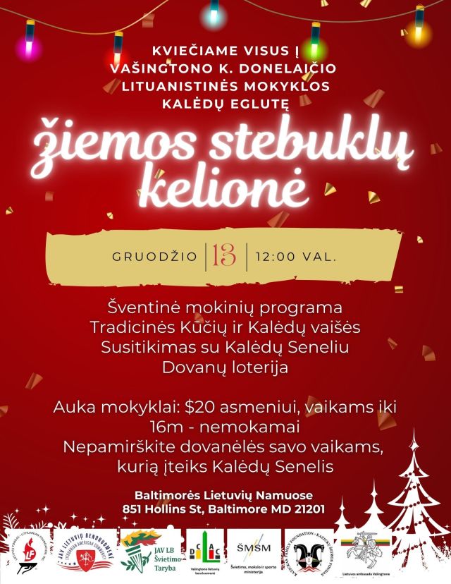 Tradicinė KDLM mugė pritraukė gausų būrį svečių ne tik iš mokyklos, bet ir Vašingtono bei Baltimorės lietuvių bendruomenių. Labai malonu buvo priimti garbės viešnias – pirmą kartą mokykloje apsilankiusią gerbiamą ambasadorienę Rasą Varvuolienę, lydimą Giedrės Šidagytės-Gudaitienės iš Lietuvos ambasados Vašingtone. Širdingai dėkojame mugės organizatorėms Jurgai ir Justei, visiems padėjusiems, apsilankiusiems ir prisidėjusiems. Ačiū už Jūsų nuoširdumą ir dosnumą, remiant mūsų mokyklą. Iki pasimatymo mokyklos Kalėdų šventėje gruodžio 13 d. 12 val. Baltimorės Lietuvių namuose!