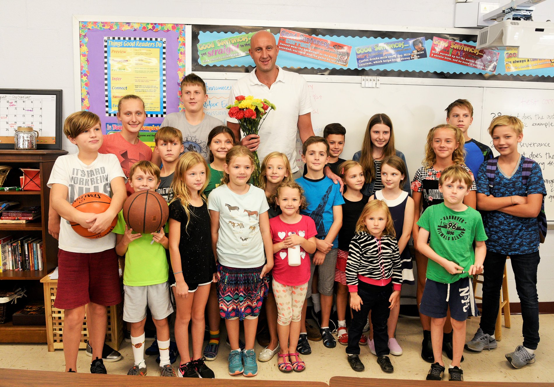Ar žinai kokią mašiną vairuoja vienas geriausių visų laikų Lietuvos krepšininkų – Žydrūnas Ilgauskas? Donelaičiukai žino, nes jiems tai pasakė jis pats, šeštadienį viešėdamas mūsų mokykloje! Į susitikimą-spaudos konferenciją su Ž.Ilgausku po pamokų skubėjo visa #KDLMŠeima. Susirinkusiuosius stebino įspūdingas krepšininko ūgis. Tik jam įėjus pro duris, donelaičiukai pasidalijo pastebėjimu – „aukštas!“. Krepšinio legenda paprastai ir nuoširdžiai atsakinėjo į mokinių, tėvelių ir mokyklos direktorės Jūratės klausimus, pasakojo apie krepšininko karjerą, supažindino su sportininko profesionalo dienotvarke, pasidalijo patarimais, kaip siekti užsibrėžtų tikslų ir tapti geru krepšininku. „Turi klausyti trenerio, būti geru komandos nariu, o svarbiausia daug dirbti ir nepasiduoti“, – sakė jis. Džiaugiamės, kad po susitikimo donelaičiukai turėjo galimybę su krepšinio legenda ne tik pažaisti krepšinį mokyklos kieme, bet ir gauti asmeninių patarimų. Dėkojame už įsimintiną popietę, autografus, begalę nuotraukų ir sakome iki kitų susitikimų, Žydrūnai!