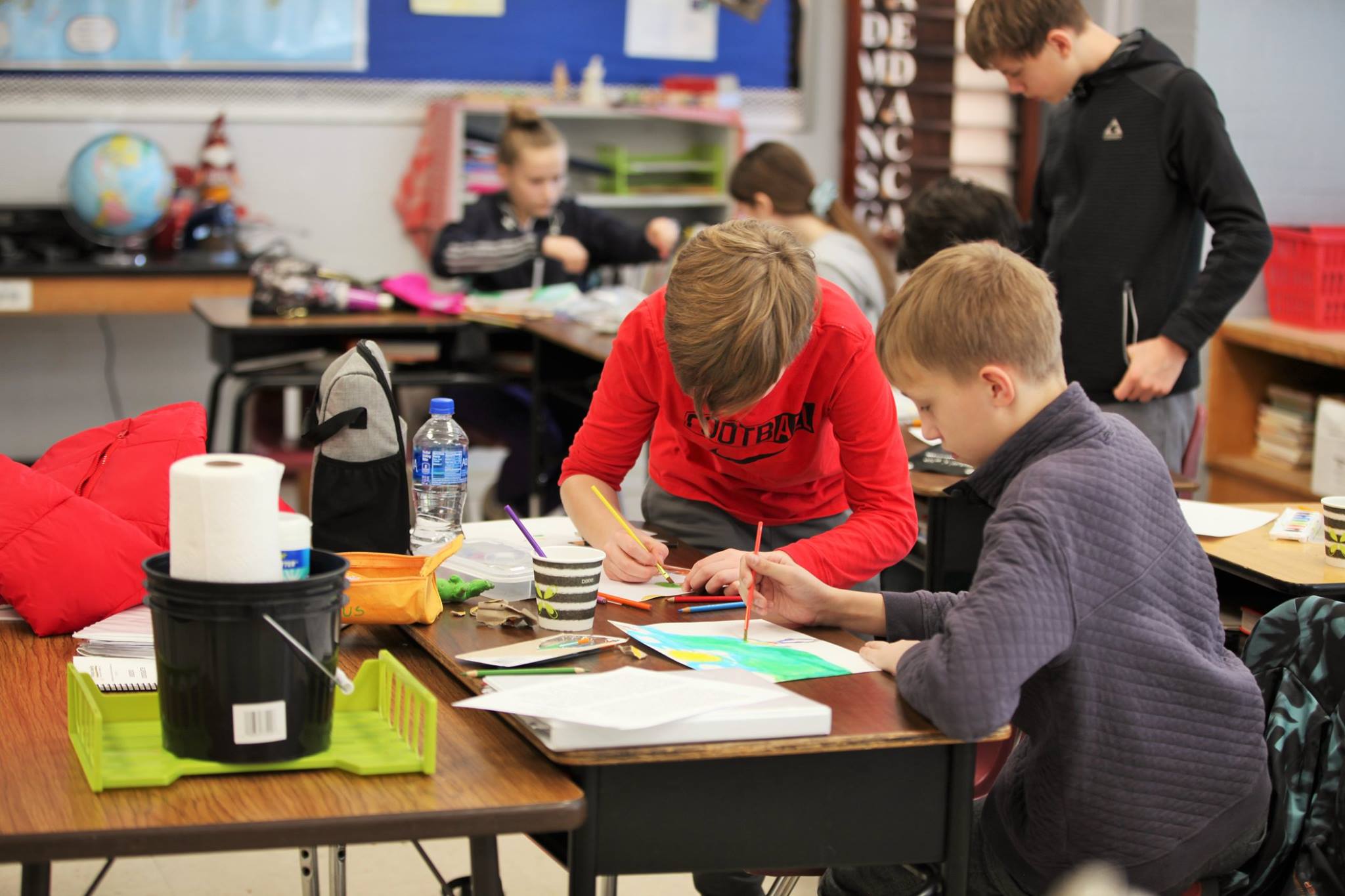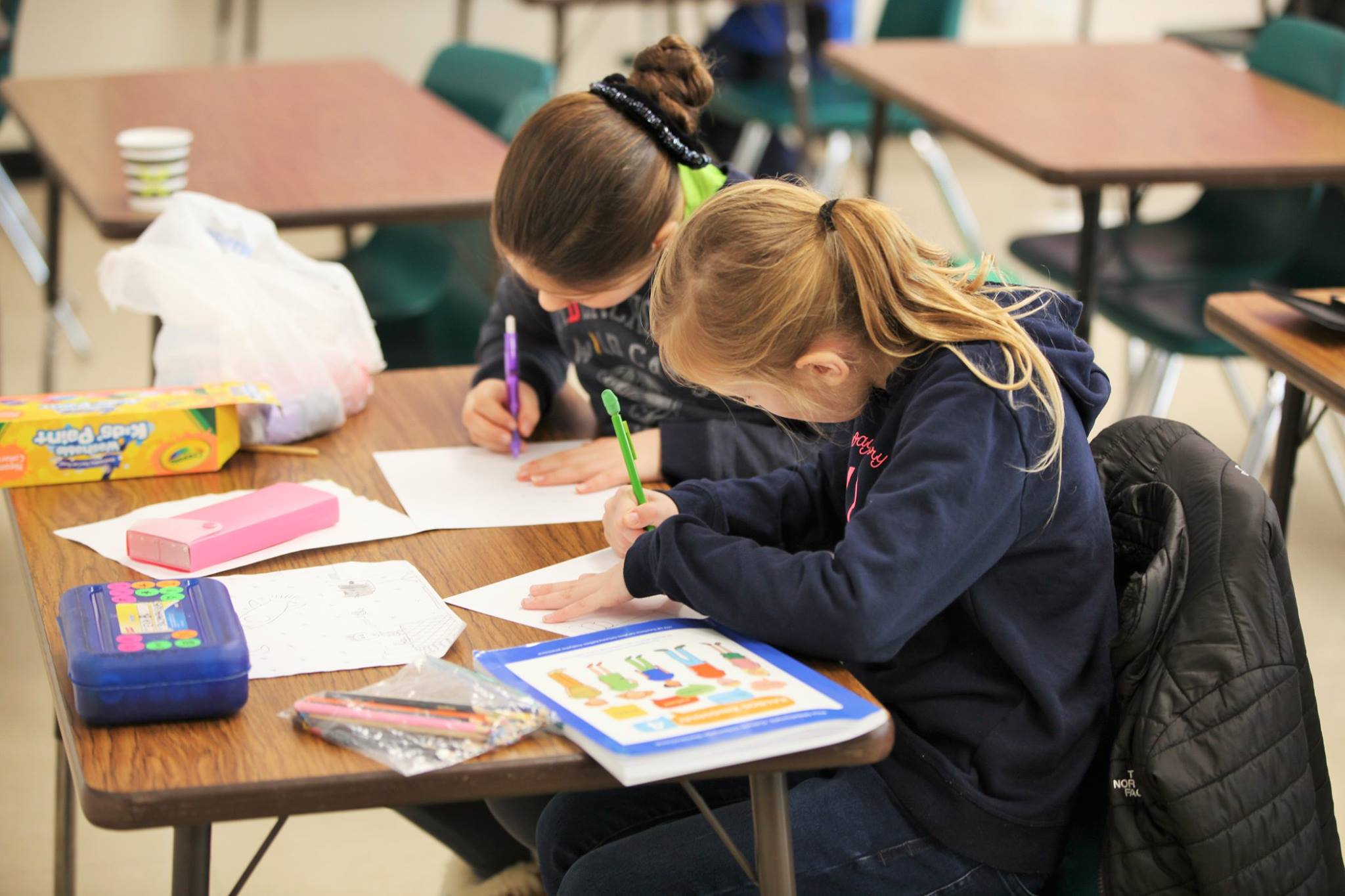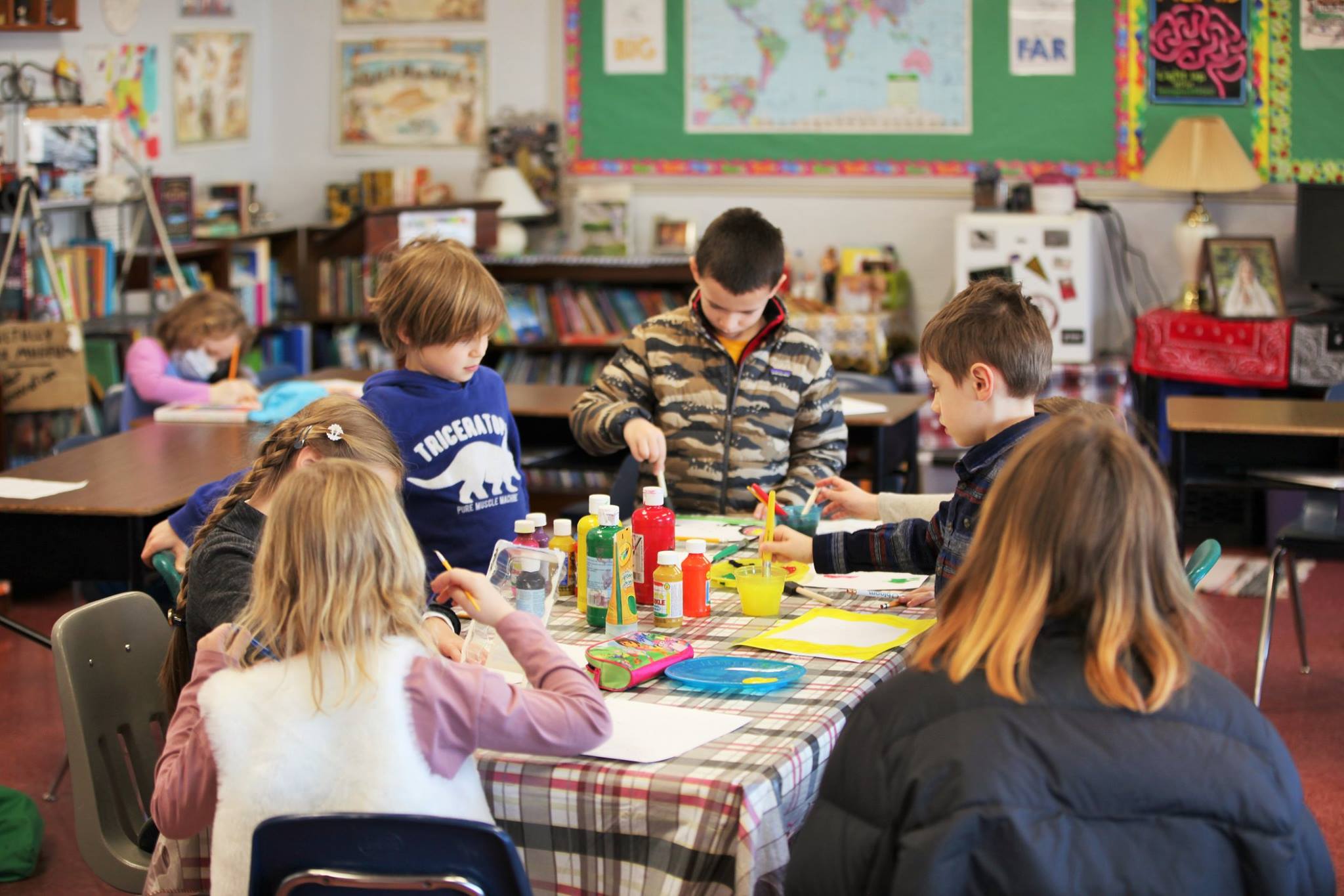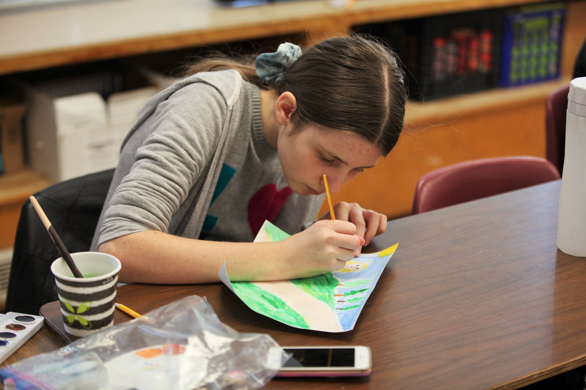 Kiek visko daug reikia suspėti nuveikti mokykloje kiekvieną šeštadienį! Šį kartą donelaičiukai, naudodami vaškines kreideles, spalvotus pieštukus, guašą arba akvarelę, iliustravo Juozo Tumo-Vaižganto kūrinius “Mikutis gamtininkas” ir “Dėdės ir dėdienės”. Piešiniai bus siunčiami konkursui, kurį organizuoja JAV LB Švietimo Taryba/ Lithuanian Educational Council of the USA