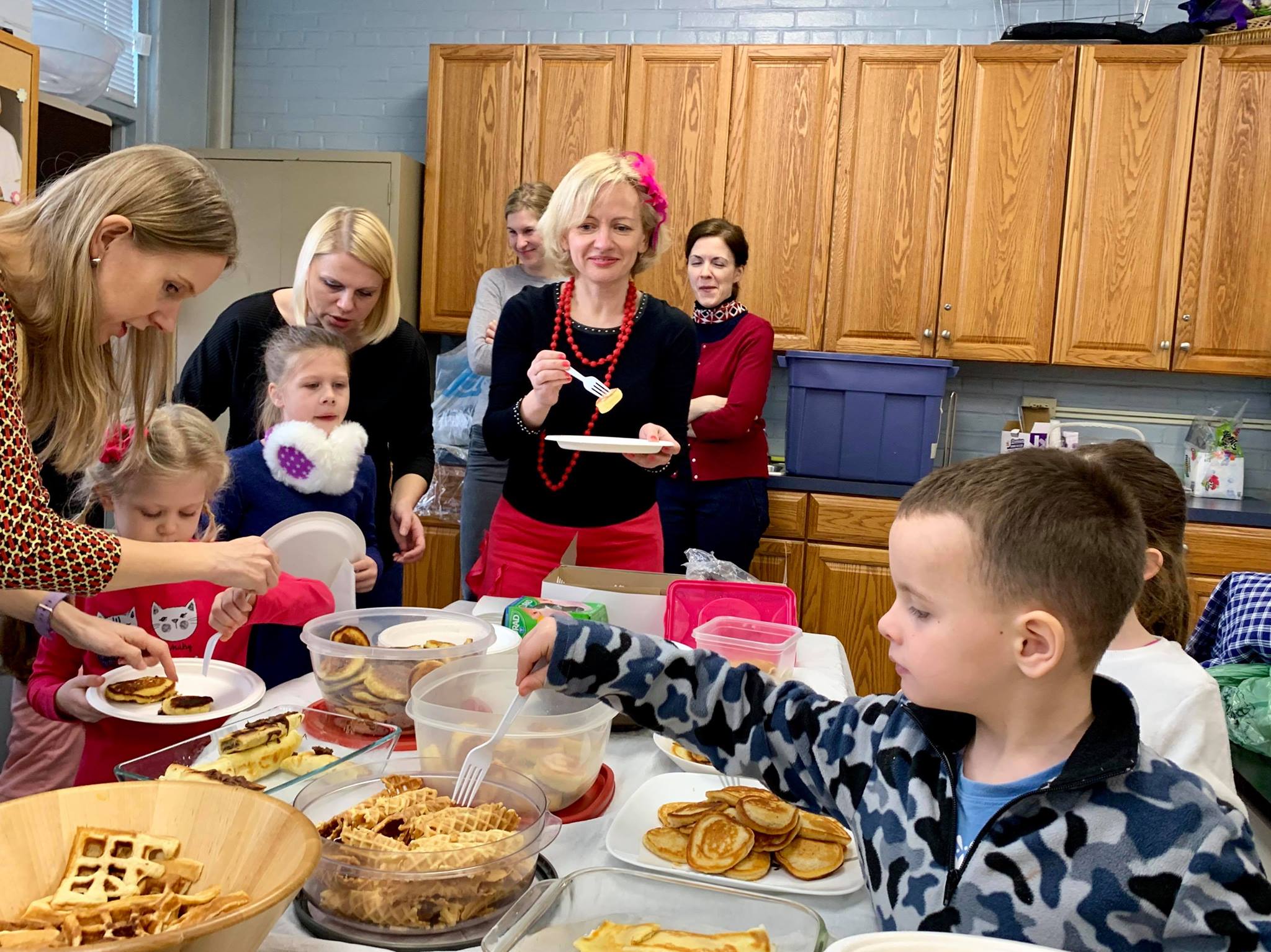 Nuo pat ryto mokyklos kieme persirengėliai donelaičiukai šūkavo ir triukšmavo, vydami lauk žiemą ir tikėdamiesi, kad Užgavėnių dainos ir žaidimai pažadins žemę ir pavasarį! Prisidūkę ir padėję Kanapiniui laimėti kovą prieš Lašininį, visi skubėjo sočiai ir skaniai privalgyti įvairiausių blynų su uogiene. Nepamiršk ir tu šiandien triukšmingai Užgavėnių dieną praleisti ir užklydusį svečią blynais pavaišinti!