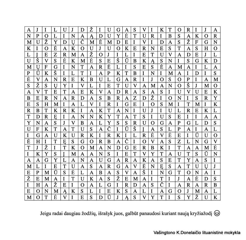 Mūsų draugai iš Gintarėlis lituanistinė mokykla Airijoje ne tik išsprendė donelaičiukų sukurtą kryžiažodį ir išsiaiškino raktažodį, bet ir sukūrė savo bei atsiuntė mums! Kas susėdę, kas sugulę ar sutūpę, visi ieškojome raidžių margumyne pabirusių atsakymų. O smagiausia buvo rasti paslėptų netikėtų ir šiltų žinučių – labas Vašingtonai, mano Lietuva, mūsų daug, sėkmės.. Kryžiažodžio autorių vardus taip pat radome! Pabandyk ir tu, labai smagu!