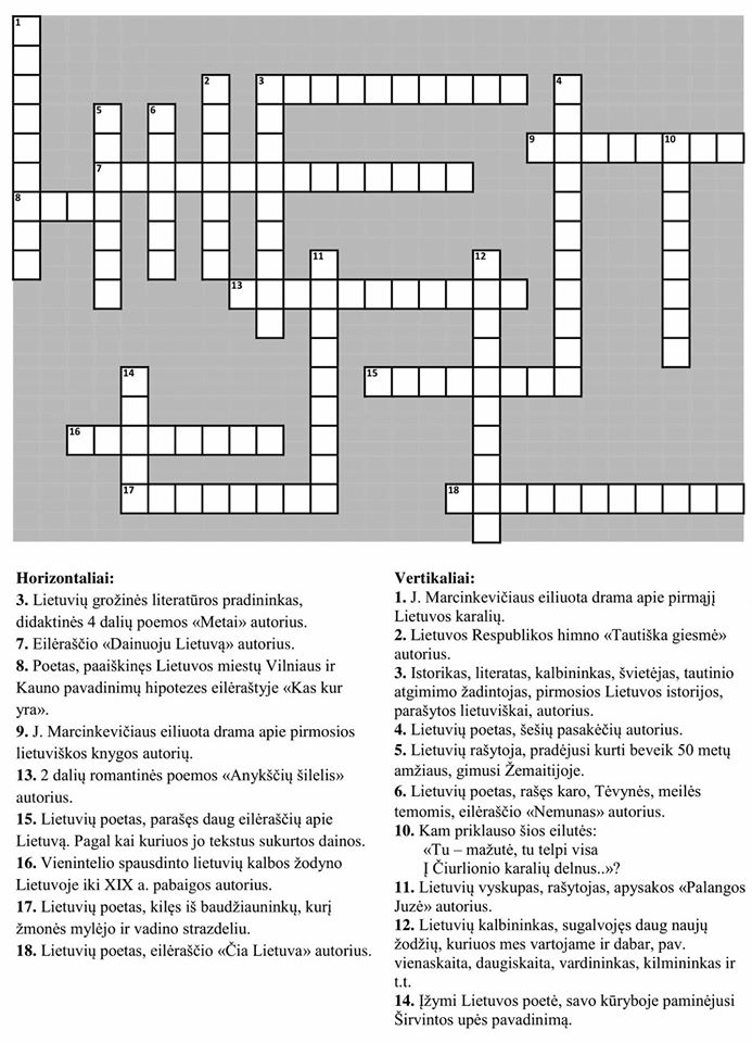 “Laba diena iš Minsko!”, – rašo mums Minsko vaikų ir suaugusiųjų lituanistinės mokyklos mokiniai, kurie mielai išsprendė mūsų 7 ir 8 kl. donelaičiukų siųstą kryžiažodį ir siūlo mums pagilinti savo lietuvių literatūros žinias ir išspręsti jų sukurtą kryžiažodį DAINUOJU LIETUVĄ. Pabandyk ir tu! Sėkmės!