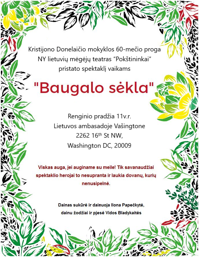 Visus mokinukus, tėvelius ir mokytojus kviečiame į Vašingtono K.Donelaičio lituanistinės mokyklos mokslo metų atidarymo šventę, kuri vyks Lietuvos Respublikos ambasadoje.
