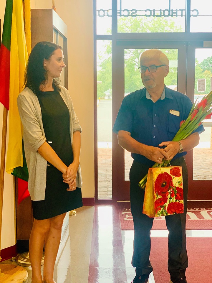 “Džiaugiuosi galėdamas aplankyti Vašingtono K.Donelaičio lituanistinę mokyklą. Esu iš krašto, kuriame gimė himno autorius V.Kudirka, rašytojas A.Vaičiulaitis ir kiti svarbūs Lietuvai žmonės. Klestėkite ir gyvenkite vardan Tėvynės Lietuvos! Čia šilta, gera ir jauku!”, – donelaičiukus sveikino svečias iš Lietuvos, mokyklos bičiulis, istorikas, pedagogas, rašytojas Antanas Žilinskas. #KDLMŠeima p.Antanui dėkojo už draugystę, už istorijos pamokas, už video reportažus ir už brangiausią dovaną – mokyklos ąžuoliuką, sėkmingai augantį J.Basanavičiaus gimtinėje, Tautinio Atgimimo ąžuolyne, Atkurtos Lietuvos Valstybės Šimtmečio giraitėje!
