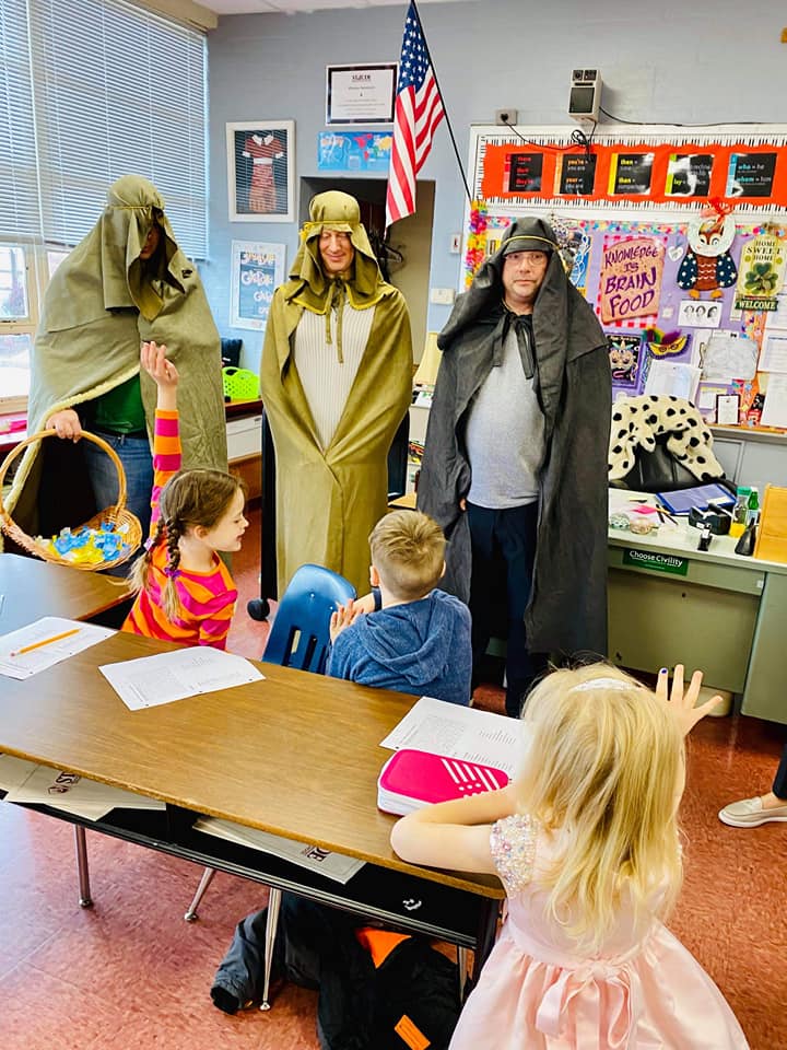 Kalėdų ir Naujųjų metų šventinį laikotarpį baigė mokykloje apsilankę Trys karaliai. Donelaičiukams jie pasakojo iš kur ir kodėl atvykę, o dalindami dovanas linkėjo ir toliau sėkmingai mokytis lietuvių kalbos!