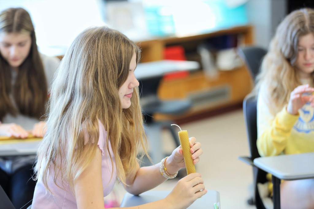 Te mokykloje donelaičiukų pagaminta ir šiandien namuose uždegta žvakutė šildys ir primins brangius, jau išėjusius artimuosius.