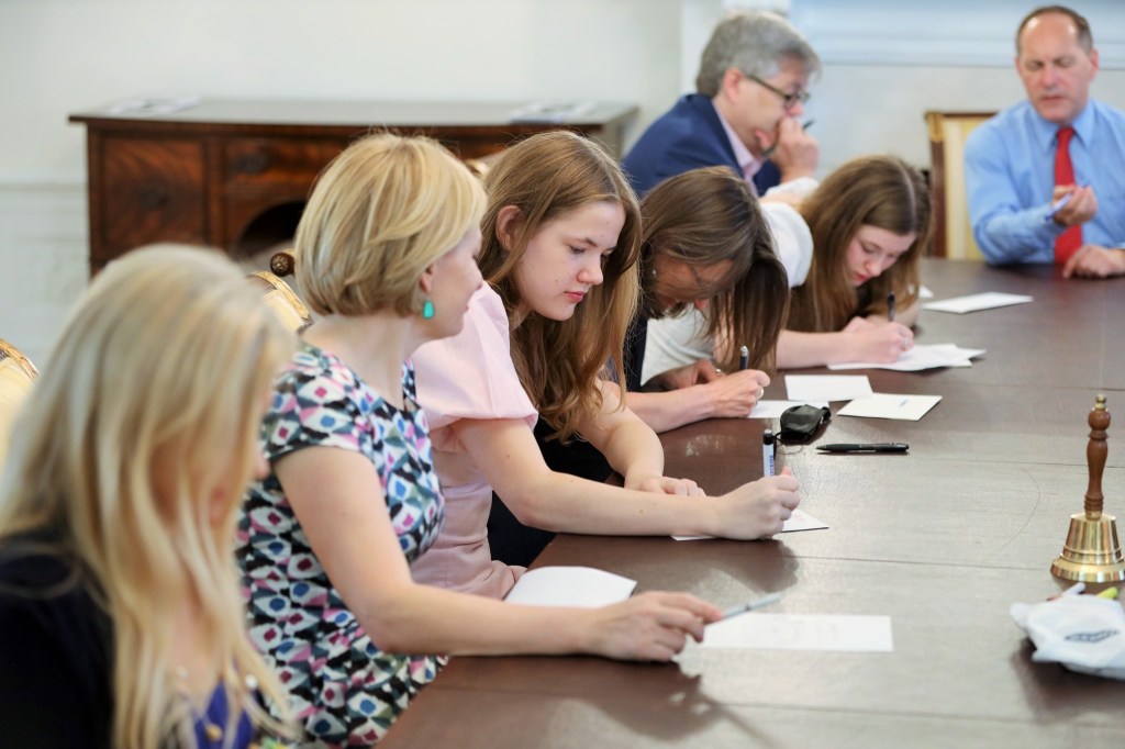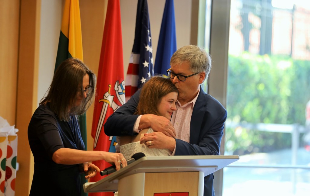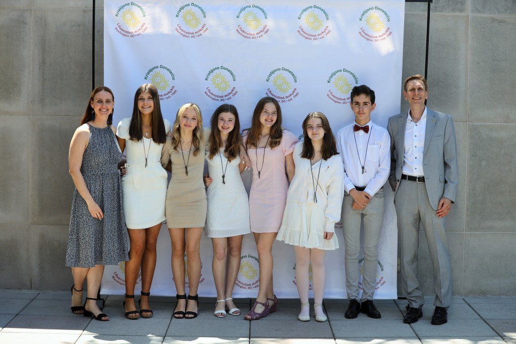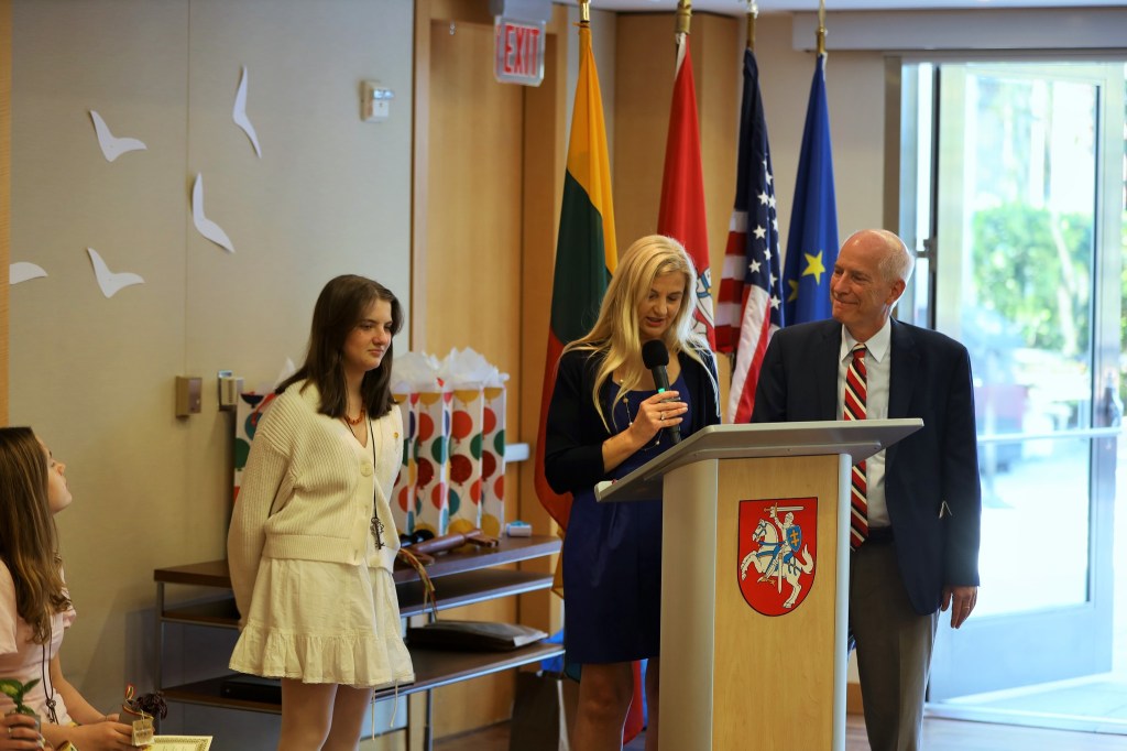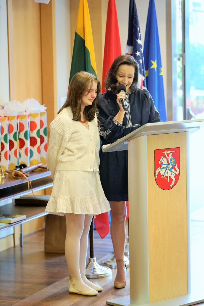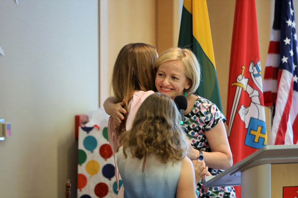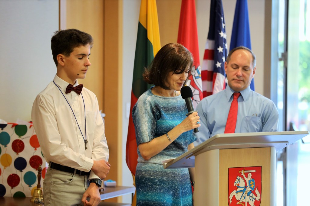 Paskutinis skambutis pakvietė abiturientus į paskutinę pamoką istorinėje Lietuvos ambasadoje Vašingtone. Graudinosi ne tik tėvai, bet ir mokiniai, nenorėdami skirtis su šeima tapusiais klasės draugais. Tėvai į savo vaikų mokslo ir žinių sparnus įsegė po dar vieną meilės ir stiprybės plunksną. Tegul jų skrydis būna tiesus, tegul niekada šie paukščiai nepasiklysta ir visada žino, kad yra mylimi, kad jais labai didžiuojamasi ir kad jie visada surastų kelią namo.