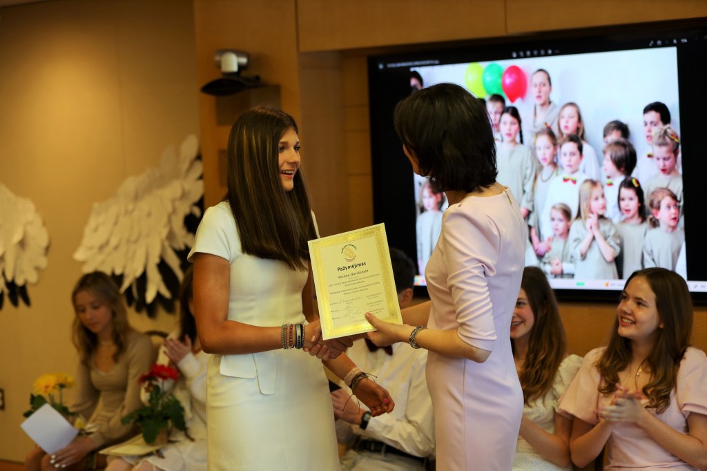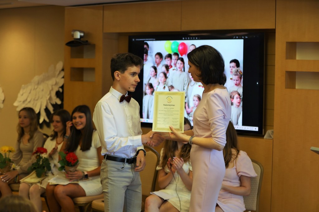 Gegužės 6 dienos donelaičiukai Eva, Greta, Vestina, Andrius, Dainora ir Ema tikrai niekada nepamirš. Tądien, kai visas pasaulis stebėjo Jungtinės Karalystės karaliaus Karolio III karūnavimą, jiems buvo įteikti mokyklos baigimo pažymėjimai.