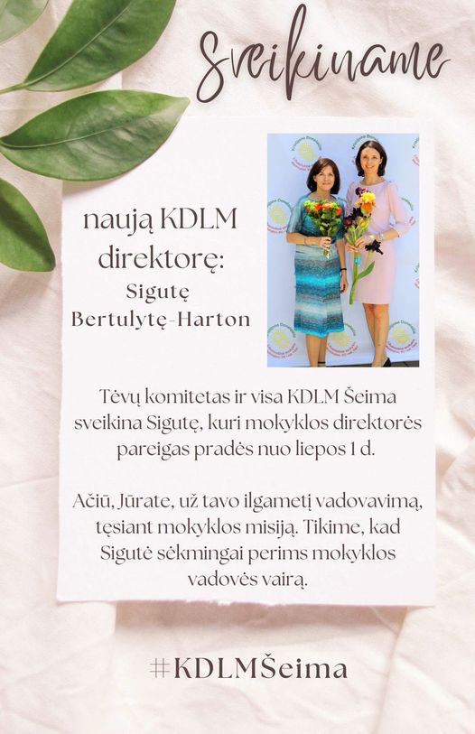 Mokykla sveikina naują mokyklos direktorę Sigutę Bertulytę-Harton!