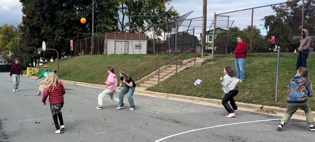 Pirma šiais mokslo metais fizinio lavinimo pertrauka lauke. Ačiū ją suorganizavusiai ir pravedusiai Jurgai! Vaikams taip patiko, kad jau klausė, ar taip žais kiekvieną šeštadienį.
