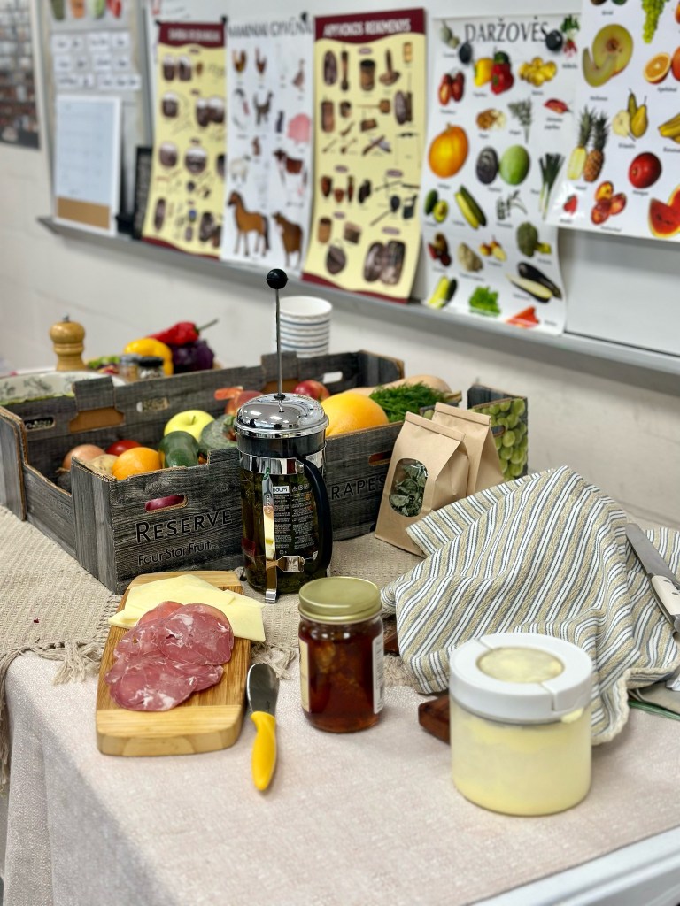 Penktokų mokytoja Živilė savo mokiniams suruošė “Ūkį mokykloje“. Mokiniai ragavo vaisius ir daržoves, spėjo kas ir koks, su mokytoja mušė sviestą, ir daug visko aptarinėjo. O pakviesti tėveliai kartu su vaikais ragavo mokytojos keptą skaniausią naminę duoną su sviestu, agurkus su medumi su koriu, gėrė tikrą lietuvišką čiobrelių ir mėtų arbatą… Visi dėkojame mylimai mokytojai už ypatingas pamokas, kurios tikrai neužsimirš!