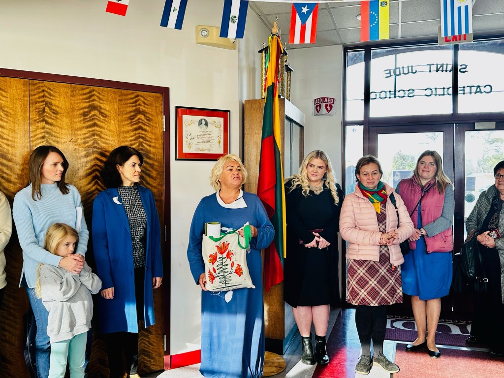 Mokykla sulaukė gausaus būrio svečių – prasidėjo JAV lituanistinių mokyklų mokytojų seminaras, kuris tęsėsi LR ambasadoje Vašingtone. Viešnių iš Čikagos, Bostono, Kolorado, mūsų mokyklos bendruomenės pasveikinti atvyko LR Ambasadorė Audra Plepytė, Kanados LB Švietimo Tarybos pirmininkė Onutė Stanevičius, o JAV LB Švietimo Tarybos pirmininkė Auksė Motto pristatė ir dvi viešnias iš Lietuvos – seminaro pranešėjas Šilutės Pamario progimnazijos mokytojas Ivetą Ambrulaitienę ir Astą Grigalienę. Jos 1-8 klasių mokiniams vedė užsiėmimus „Linksmai pažink Lietuvą žaisdamas ir judėdamas.“