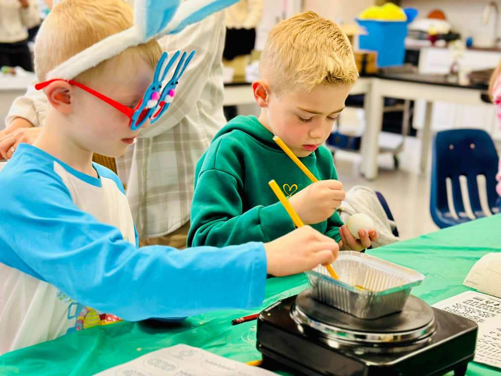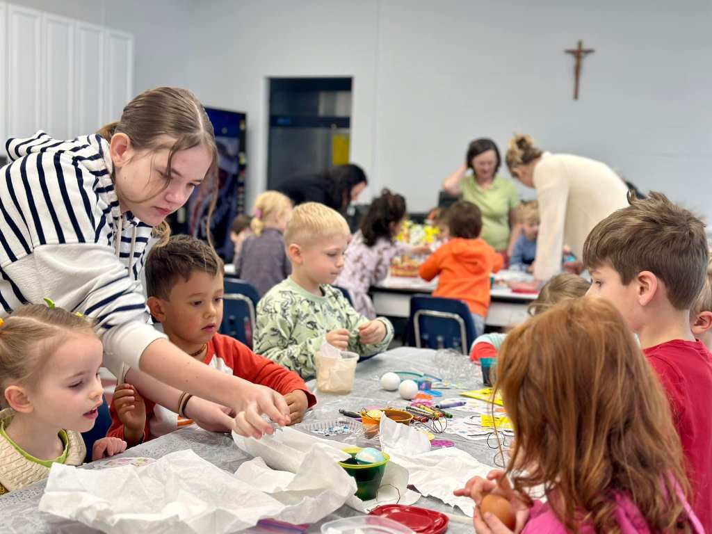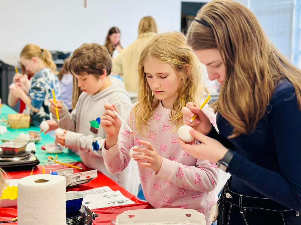 Donelaičiukai margina margučius ir ruošiasi Šv. Velykoms.