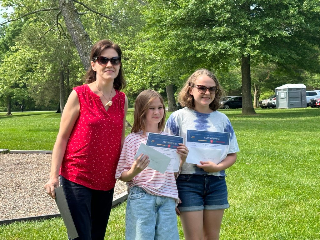 Paskutinę mokslo metų dieną smagiai praleidome parke. Sveikinome JAV LB Švietimo Tarybos Rašinių konkurso nugalėtoją Mayą ir Piešinių konkurso 3 vietos laimėtoją Liną, bei atsisveikinome su “gandriuke“ Atėne.