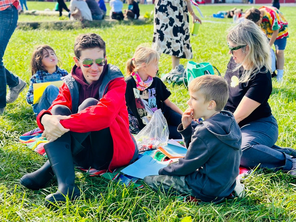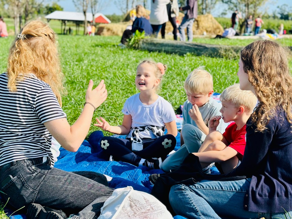Šeštadienį džiaugiamės puikia diena ūkyje, kur vyksta pamokos, skiname obuolius ir sveikiname mūsų mylimas mokytojas Mokytojo dienos proga.