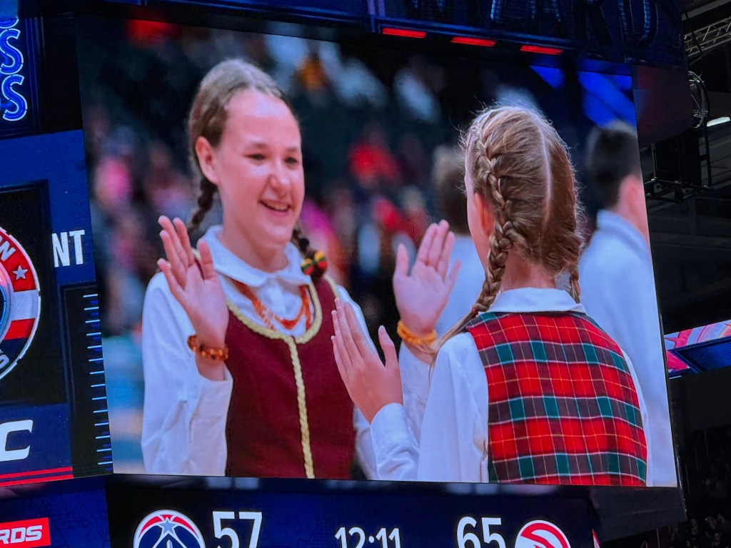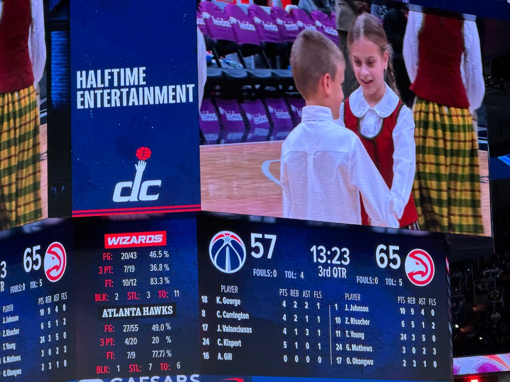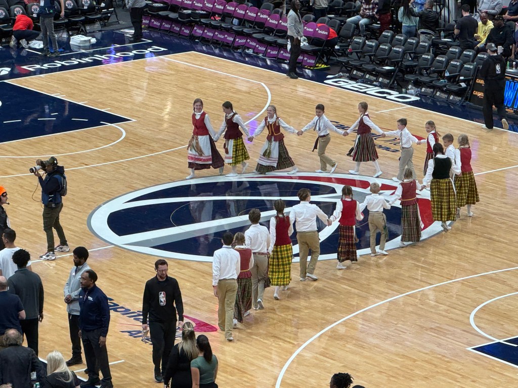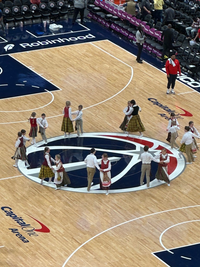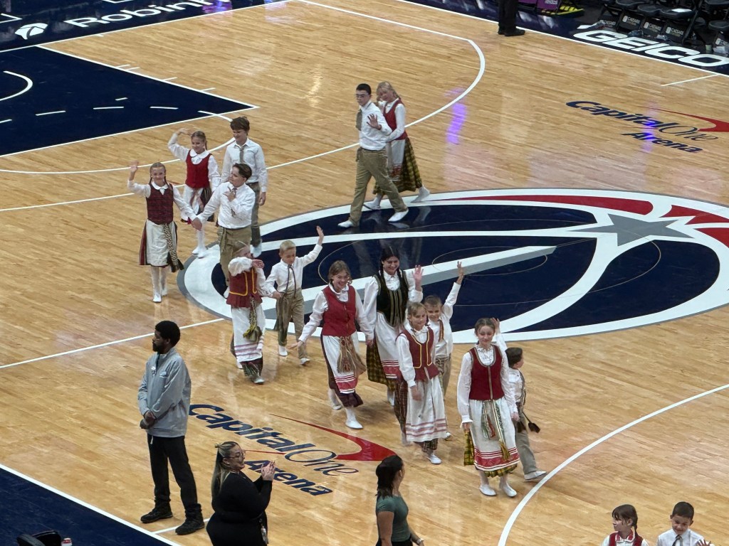 Labai lauktas lietuviško paveldo vakaras Capital One arenoje – vakar susitiko Washington Wizards su Jonu Valančiūnu ir Atlanta Hawks, o per varžybų pertrauką pasirodė mūsų mokyklos tautinių šokių grupė “Juostelė“. Entuziastingas lietuvių palaikymas neabejotinai padėjo Jonui Valančiūnui ir Wizards laimėti prieš Hawks, o mūsų šokėjams – puikiai atstovauti mokyklą. Susitikime po varžybų Jonas Valančiūnas labai gražiai atliepė ir daugelio mūsų supratimą, ką reiškia būti lietuviu.