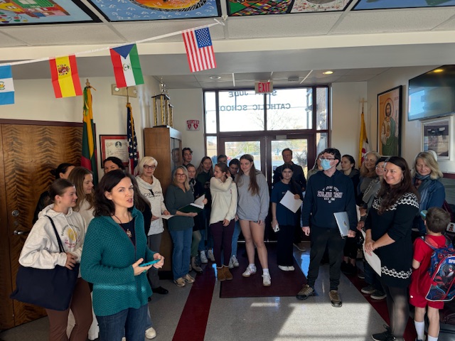 Lietuvos himno giedotojų šeštadienį buvo gerokai daugiau – mokykloje repetavo buvusios mokytojos Vaidos suburtas choras “Jorė“. Dėkui už įspūdingą tribalsę “Tautinę giesmę“, ir sėkmės ruošiantis Dainų Šventei 2025!