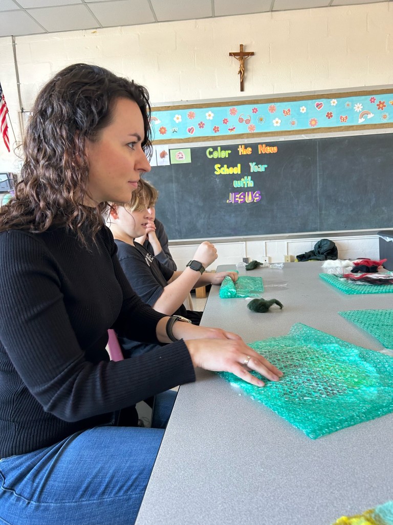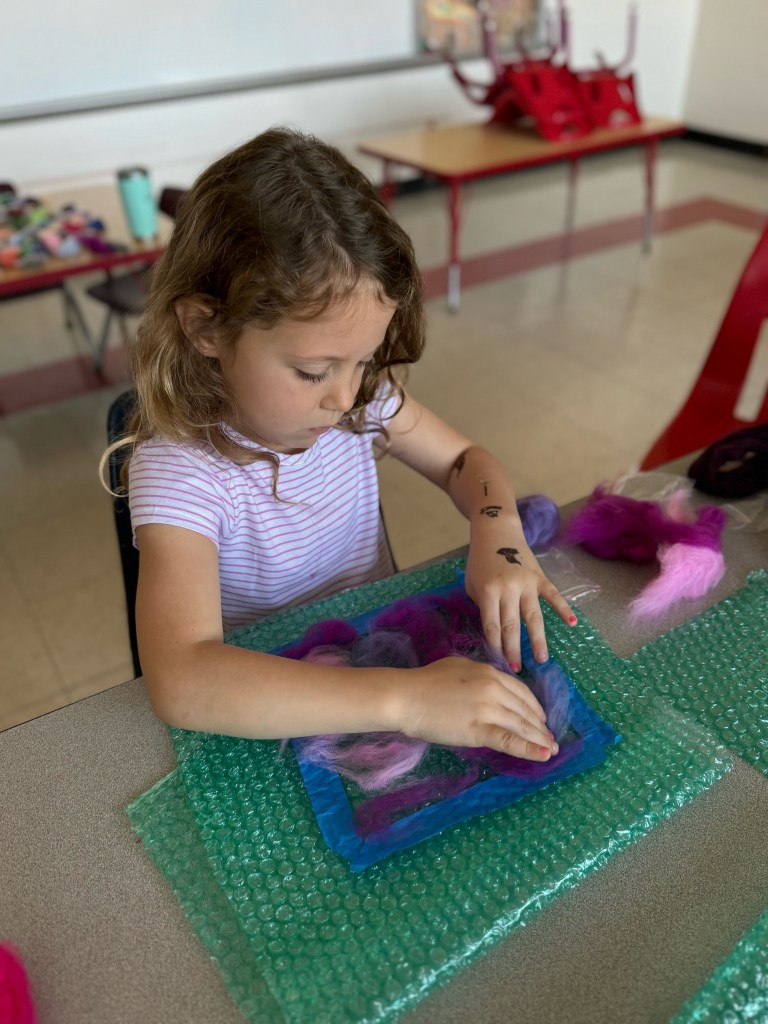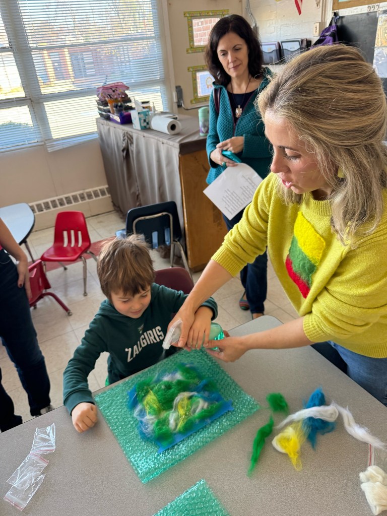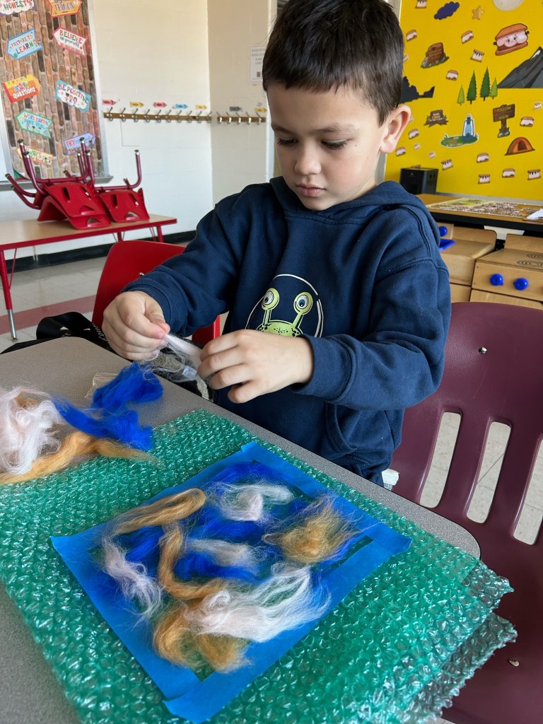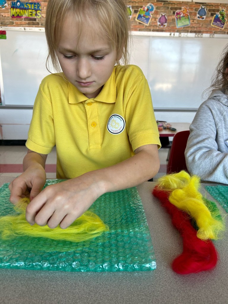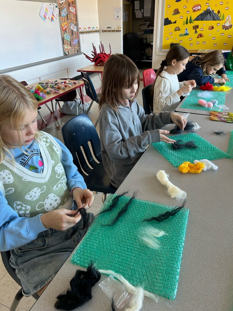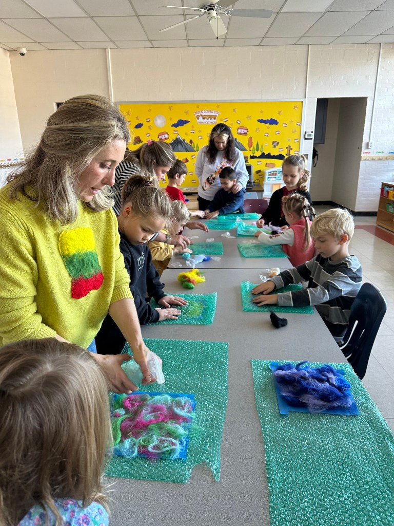 Visiems – nuo pačių mažiausių iki aštuntokų – labai patiko mokytojos Lauros amatų pamoka. Vilnos vėlimas buvo nauja, įdomi, spalvinga ir įtraukianti veikla. Nekantriai laukiame veltinių parodos ir kitų amatų pamokų. Ačiū, mokytoja Laura!