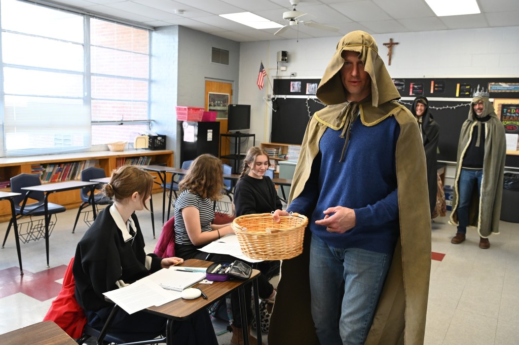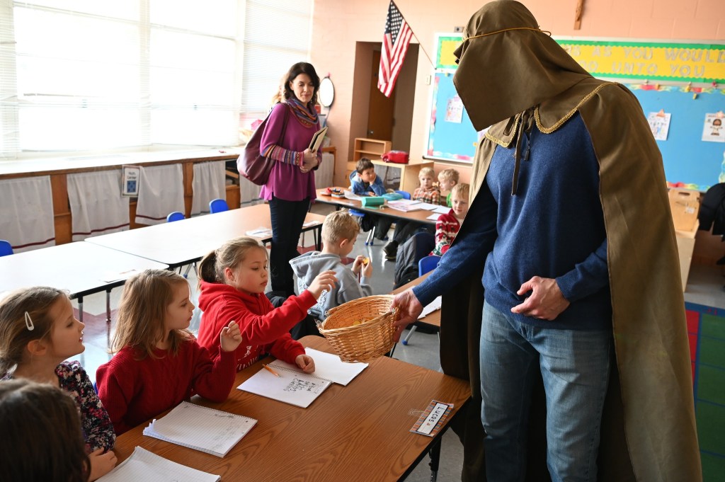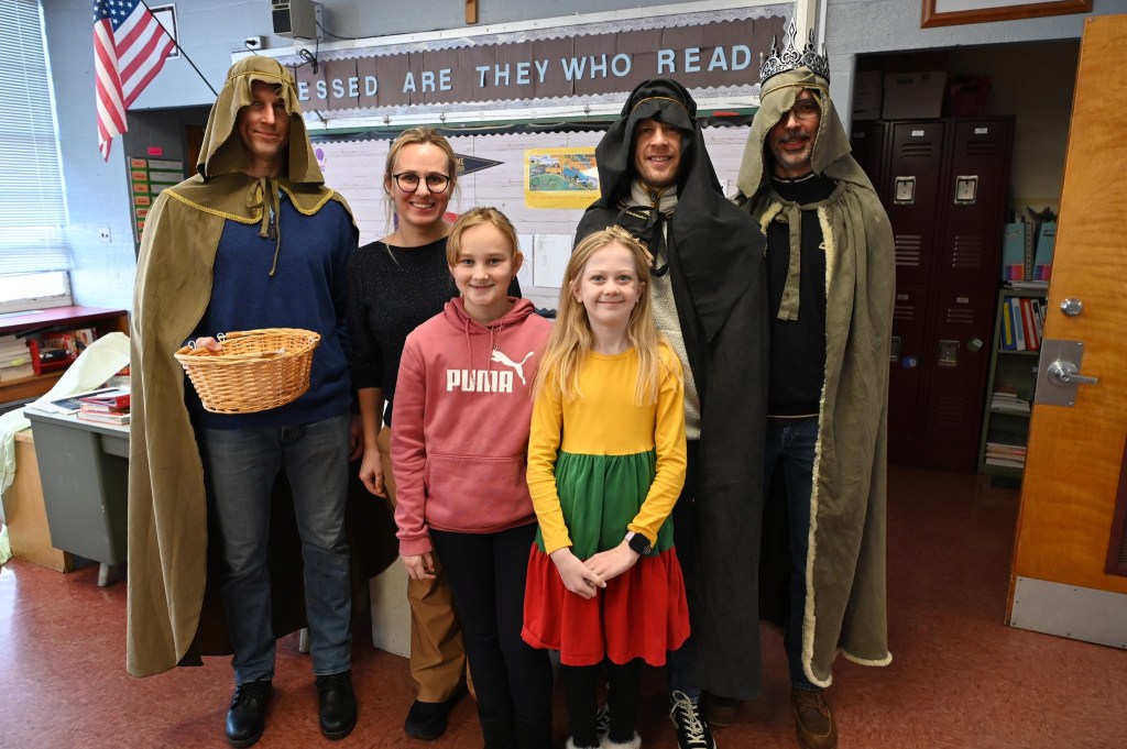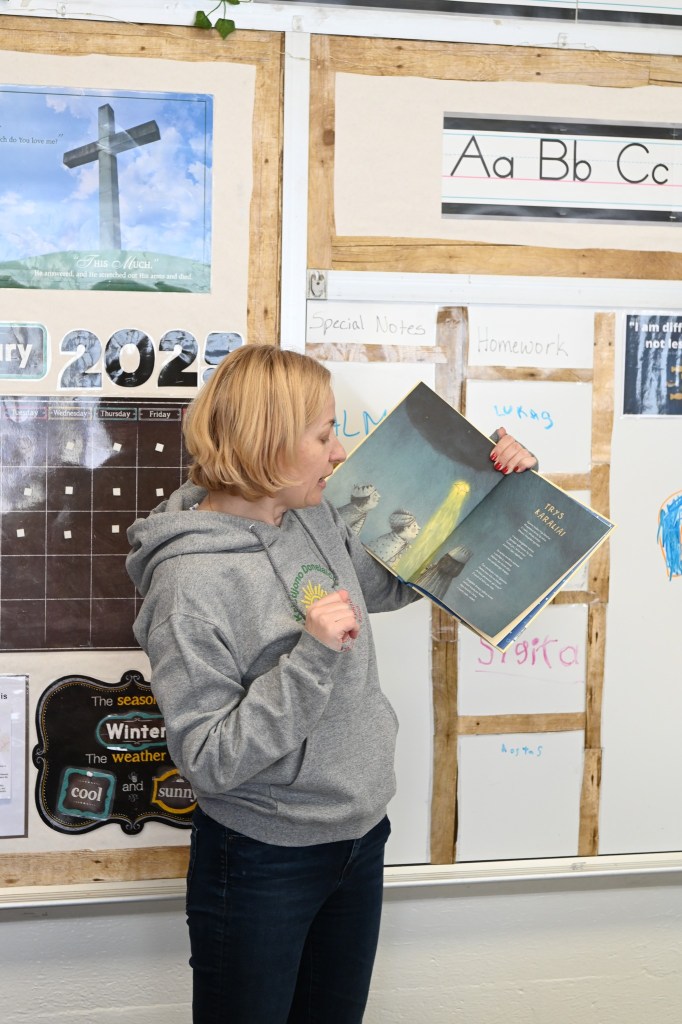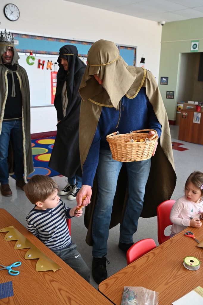 Šiandien mokinius klasėse aplankė Trys karaliai. Vaikai džiaugėsi svečių dovanotomis aukso monetomis ir susidomėję skaitė eilėraštį “Trys karaliai“.