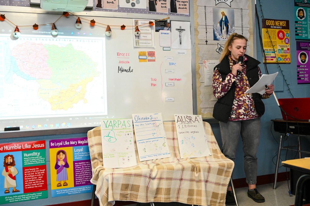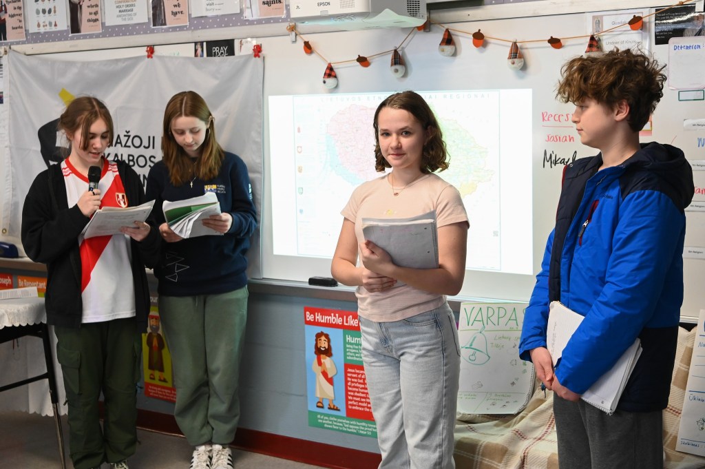 Švenčiame VLKK organizuojamas “Lietuvių kalbos dienas“! Pirmasis renginys – 5 Lietuvos etnografinių regionų pristatymai, kuriuose dalyvavo visa mokykla. Nuo ikimokyklinukų Mažosios Lietuvos knygnečių ir spaustuvininkų iki aštuntokų žemaičių tarmių grupių, nuo aukštaičių sutartinių ir dzūkavimo iki Suvalkijos kulinarinio paveldo. Renginį vainikavo regionų patiekalų degustavimas. Ačiū renginio vedėjai Livijai, visoms mokytojoms, mokiniams ir tėveliams, taip nuoširdžiai besiruošusiems ir dalyvavusiems.