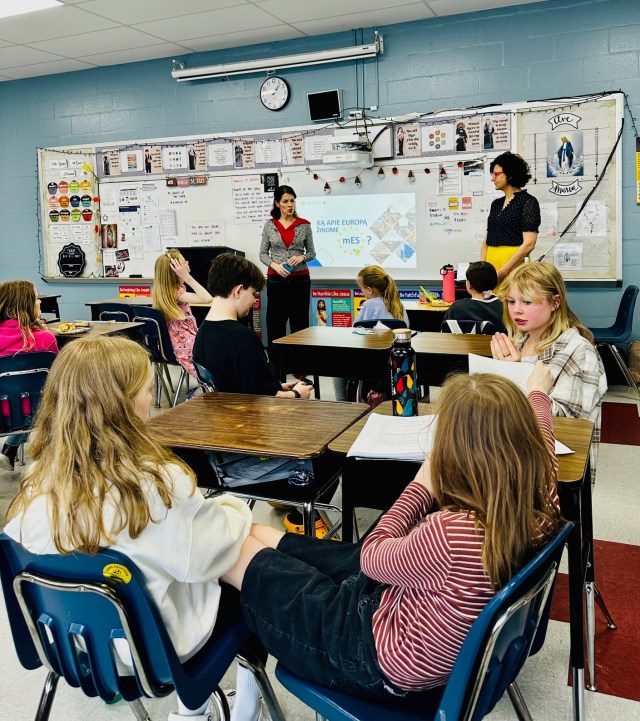 Dalyvaujame LR Užsienio reikalų ministerijos projekte “Atgal į mokyklą“, prie kurio prisijungti šiemet pirmąkart pakviestos ir lituanistinės mokyklos. Dėkui mus aplankiusiai Giedrei Šidagytei-Gudaitienei iš Lietuvos ambasados JAV, kuri įdomiai pasakojo apie Europos Sąjungą ir surengė smagią viktoriną, po kurios mokinius pradžiugino prizais.