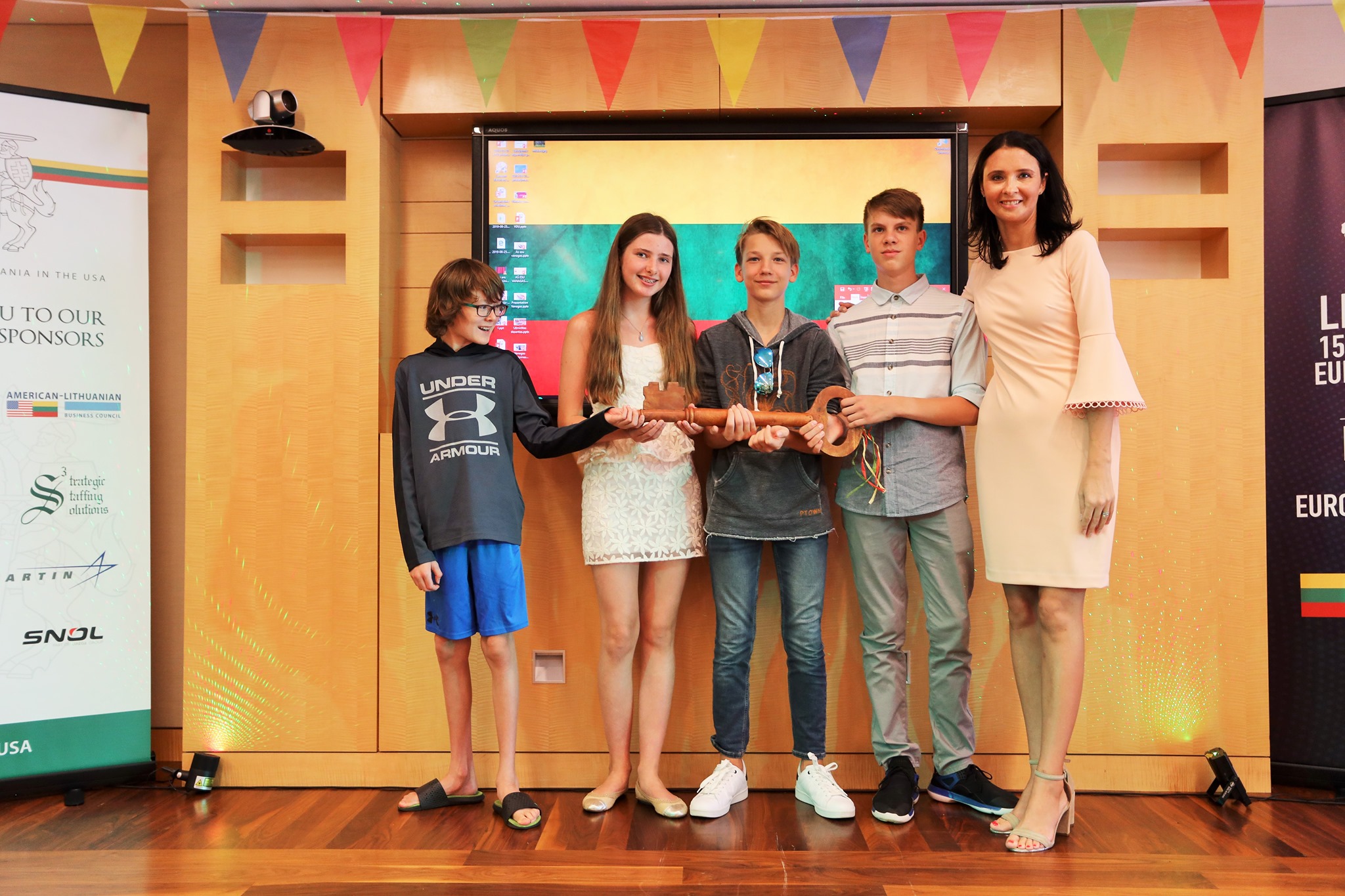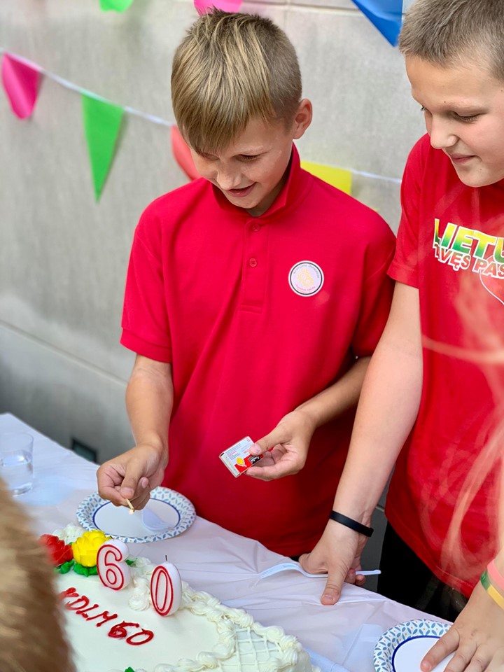 Ačiū sakome ir mokyklos bičiuliams JAV lietuvių bendruomenės krašto valdybai, Vašingtono lietuvių bendruomenei ir Lietuvos Švietimo, mokslo ir sporto ministerijai už sveikinimus ir dovanas, mokyklos rėmėjams JAV lietuvių bendruomenės Švietimo tarybai, Lietuvių fondui ir Kazickų Šeimos fondui.