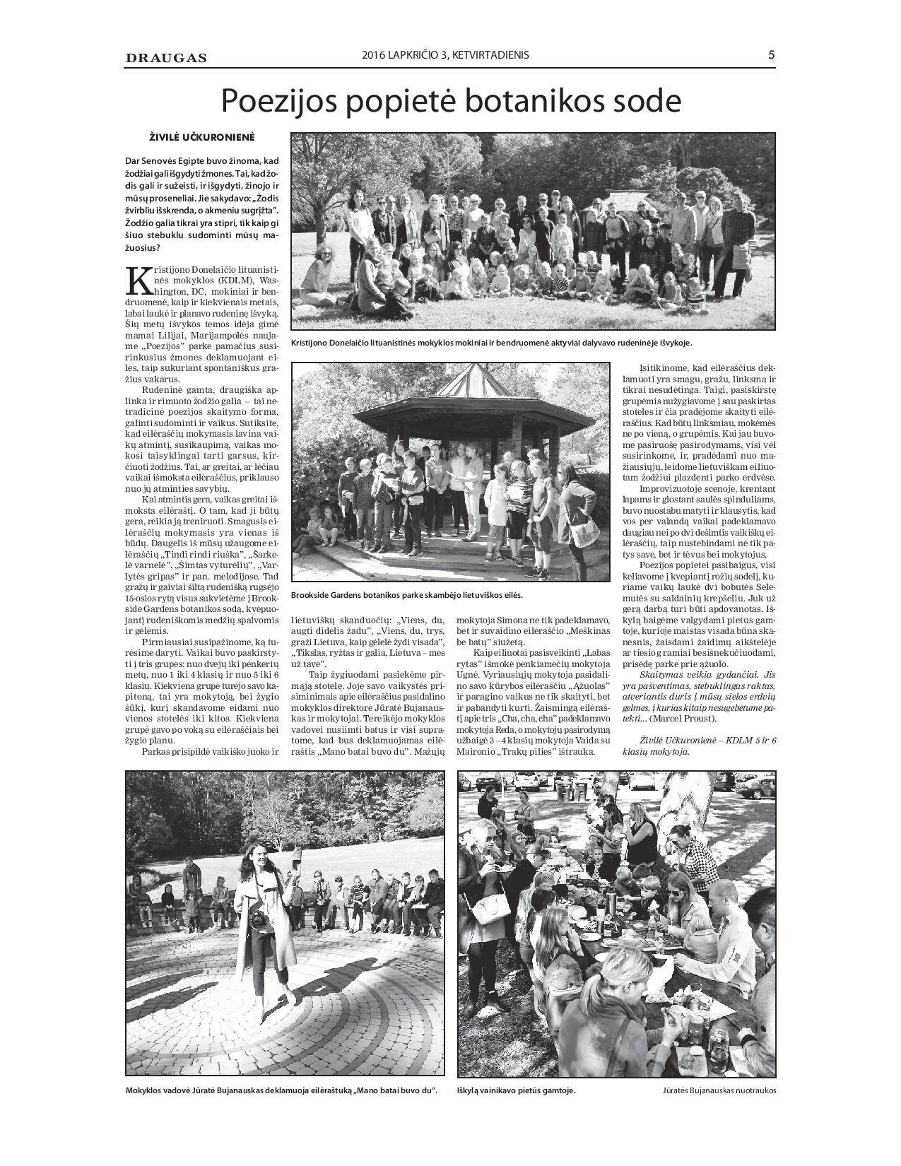 - 2016-05-02. Sūduvis. Tautinio Atgimimo Ąžuolyne augs ir Vašingtono K. Donelaičio lituanistinės mokyklos ąžuoliukas